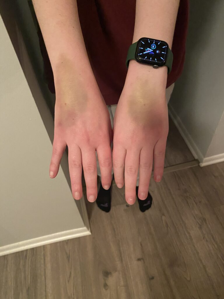 The picture on the right is after the nursing staff tried to stick the IV into my hands before my colonoscopy and endoscopy