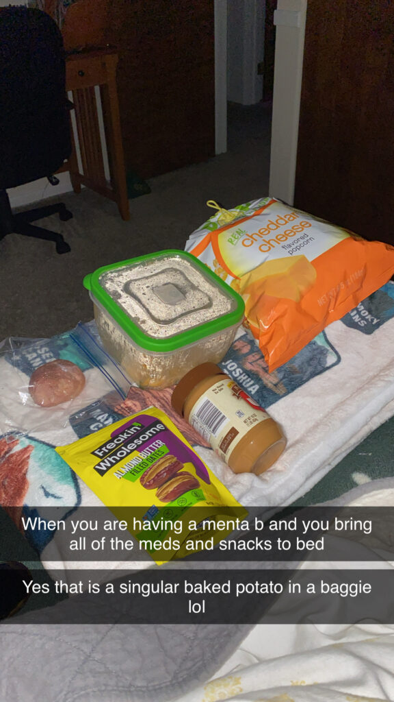 And in the picture on the right, I could barely move some days and so would bring food and medicine to me for the day