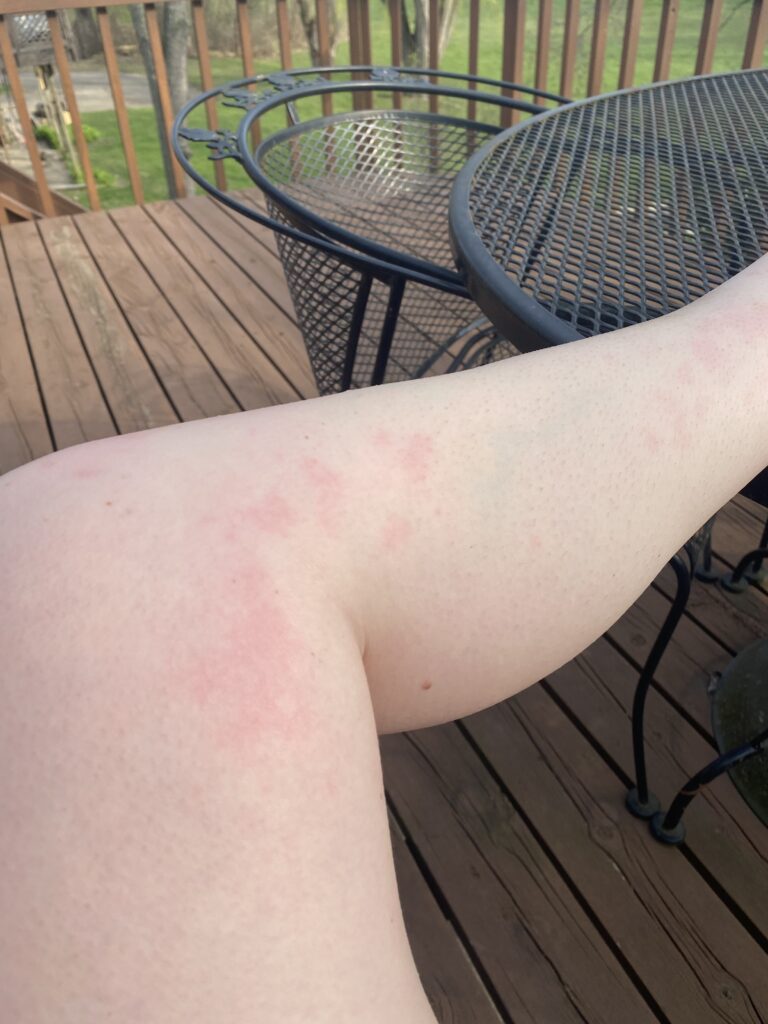 These are my left and right legs after I got out of the shower, I’m not sure what these red patches were and they don’t show up every time I shower