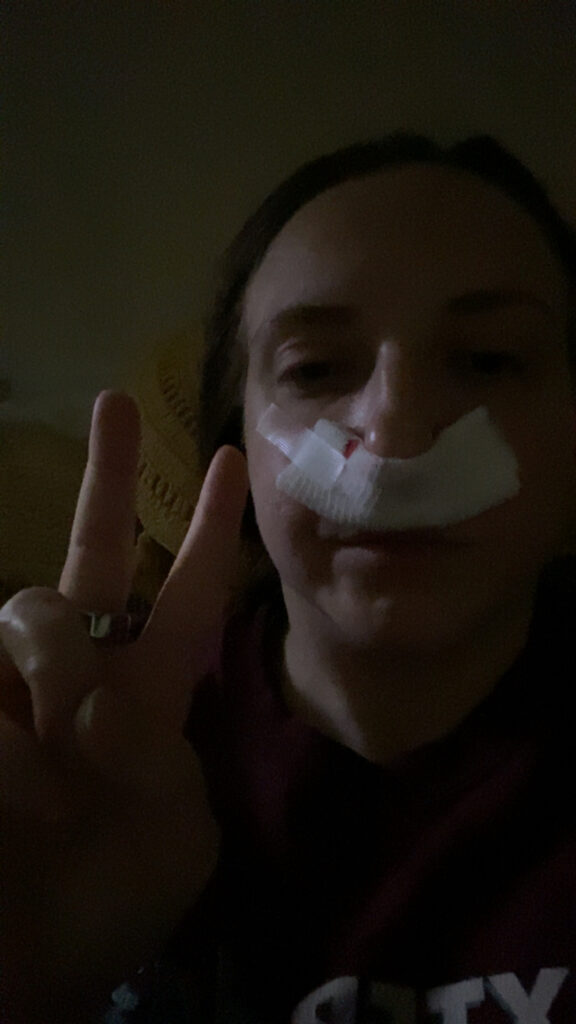 In the picture on the right is after the ENT surgery, my nose was constantly bleeding but it was a succes